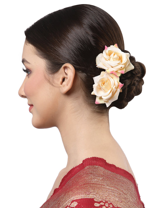 Vogue Hair Accessories Light Weight Rose Flower Bun Maker Juda Pins Hair Accessories (Off-White-2)