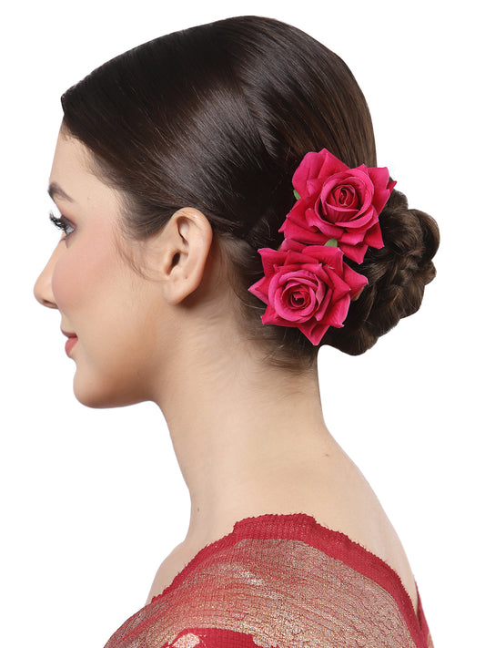 Vogue Hair Accessories Light Weight Rose Flower Bun Maker Juda Pins Hair Accessories (4 Hair Pins) (Dark Pink)