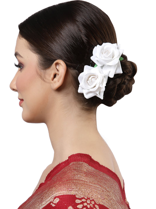Vogue Hair Accessories Light Weight Rose Flower Bun Maker Juda Pins Hair Accessories (White Set -2)