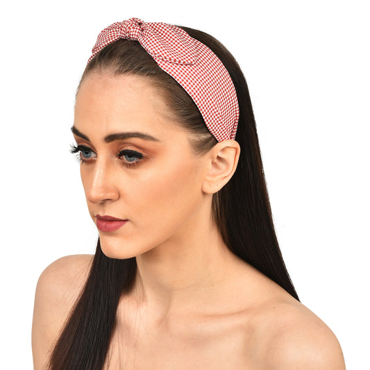 Vogue Hair Accessories Printed Fabric Knot Metal Hairband Headband for Women and Girls (Check Bow)