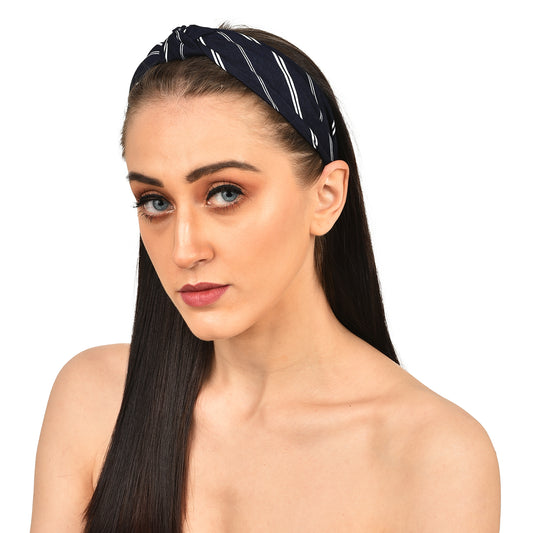 Vogue Hair Accessories Solid Fabric Knot with Stripes Plastic Hairband Headband for Girls and Women