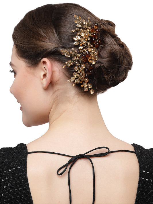 Vogue Hair Accessories Gold-Plated Stone-Studded Hair Pin