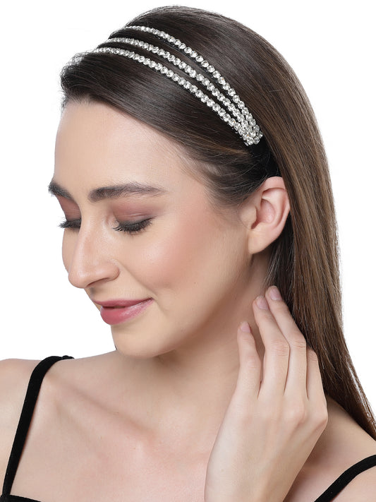Vogue Hair Accessories Silver Handmade Tripple Line Stone Hairband