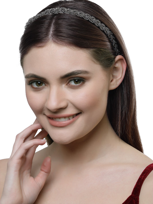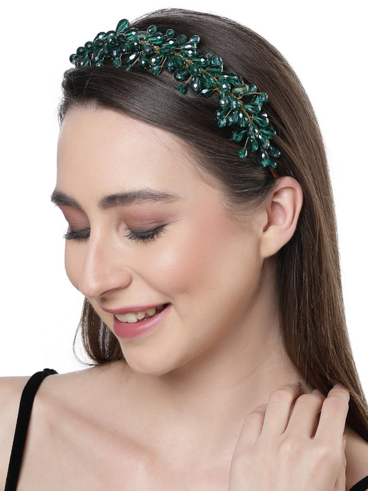 Vogue Hair Accessories Green Crystal Double Line Hairband for Women and Girls