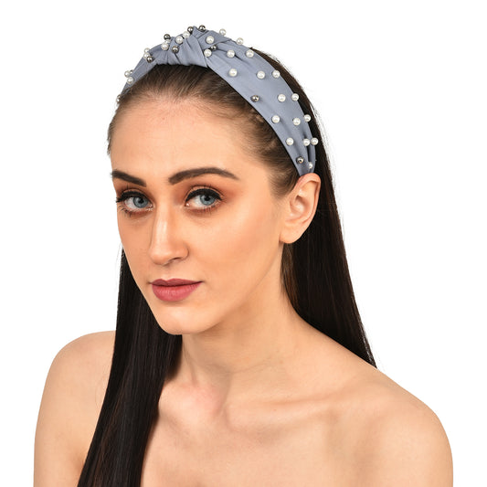 Vogue Hair Accessories Grey fabric Pearl Hairband